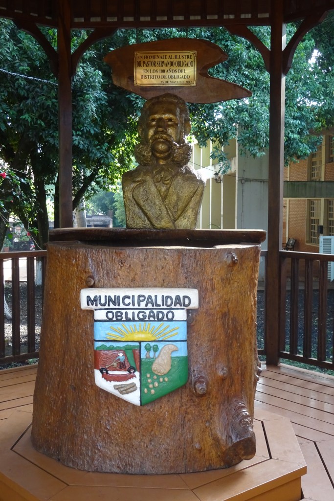 Die Municipalidad ist an einer großen Straße in Obligado nahe der Polizei (Standort). Wie gefühlt überall in den Colonias Unidas gibt es eine Vielzahl freier Parkplätze rundum, ohne daß man suchen muß. Kostenlose Parkplätze, versteht sich. Parkt man direkt an der Hauptstraße, so geht man durch das kleine Vordergebäude durch einen Säulenhof rechts an den Fahnen vorbei in das Verwaltungsgebäude hinein. Dort sind im Erdgeschoß verschiedene Schalter, unter anderem der für impuesto immobiliario (Grundsteuer) und ein Kassenschalter (caja).