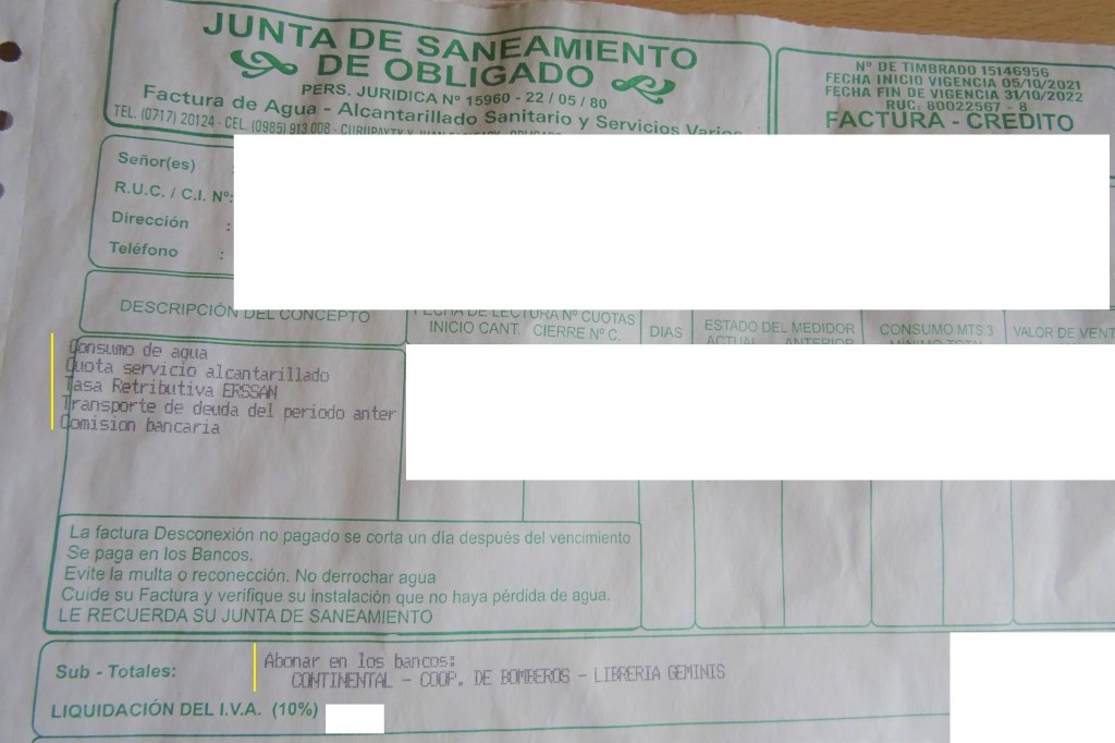 Das Gute in Paraguay ist ja unter anderem, daß man keinen Briefkasten hat, der regelmäßig mit Rechnungen aller Art gefüttert wird. Gleichwohl sind Steuern, Gebühren und Co. natürlich auch hier zu einem bestimmten Zeitpunkt fällig. Die Bezahlung funktioniert ganz anders als in Deutschland. Wir zeigen Dir hier, wie wir es in Obligado gemacht haben.