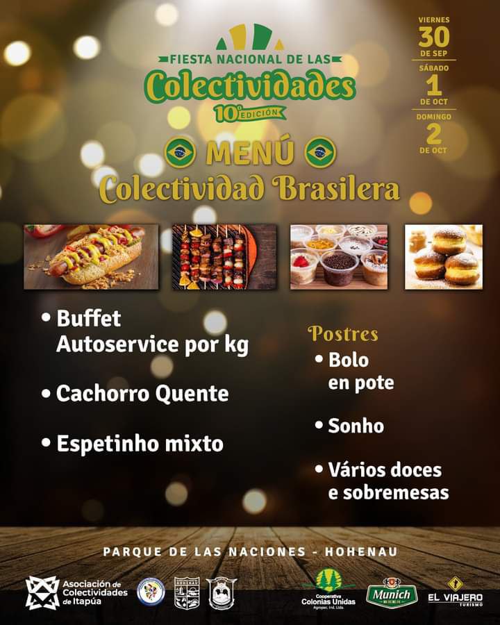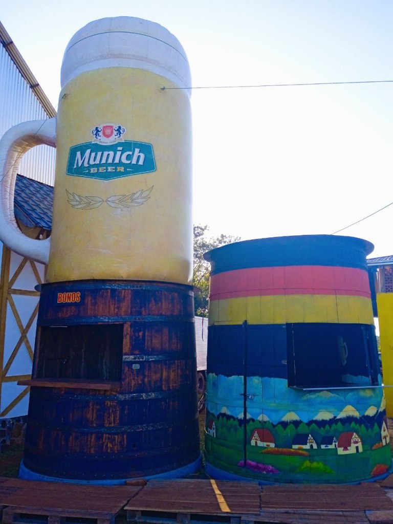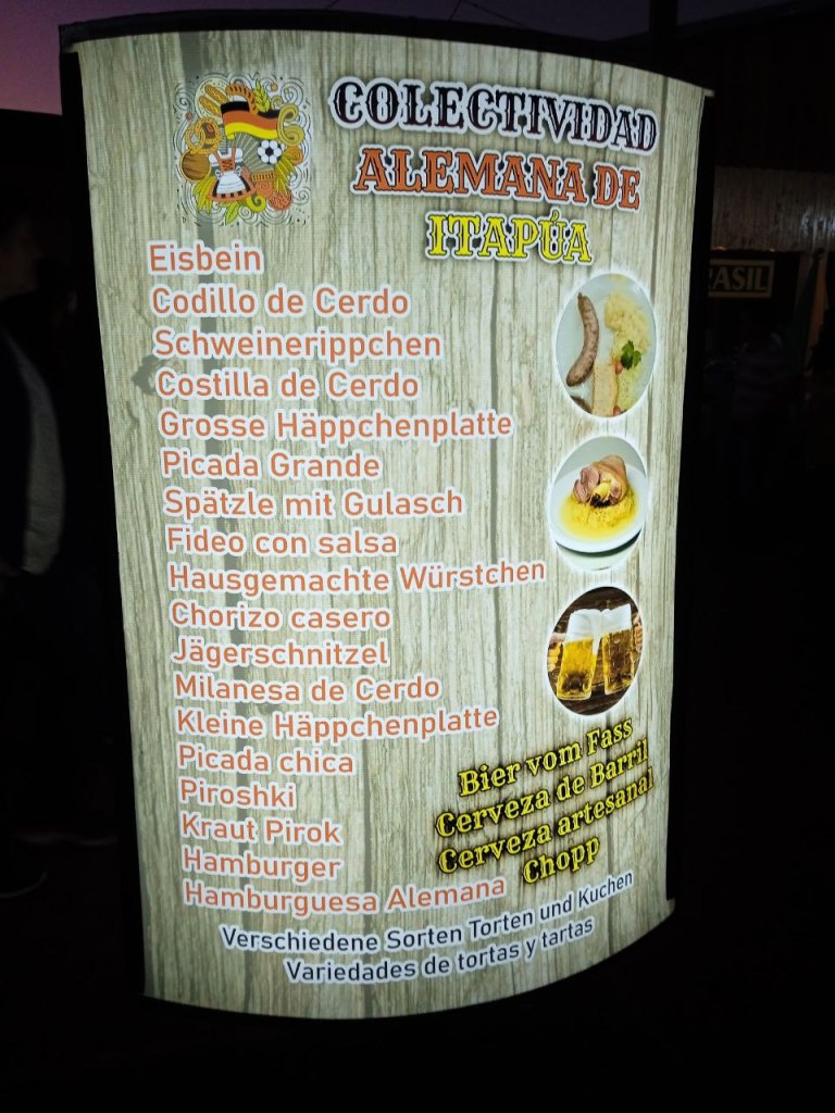 Die deutsche colectividad hat heuer das Oktoberfest als Thema. Passend dazu glänzt sie mit einer reichlichen Auswahl an Köstlichkeiten aus der gediegenen Hausmannskost wie im besten bayerischen Wirtshaus. Das Haus der Deutschen Gemeinschaft Itapúa ist geschmückt wie ein Münchner Bierzelt, und traditionelle Blasmusikkapellen laden zum Tanz ein.